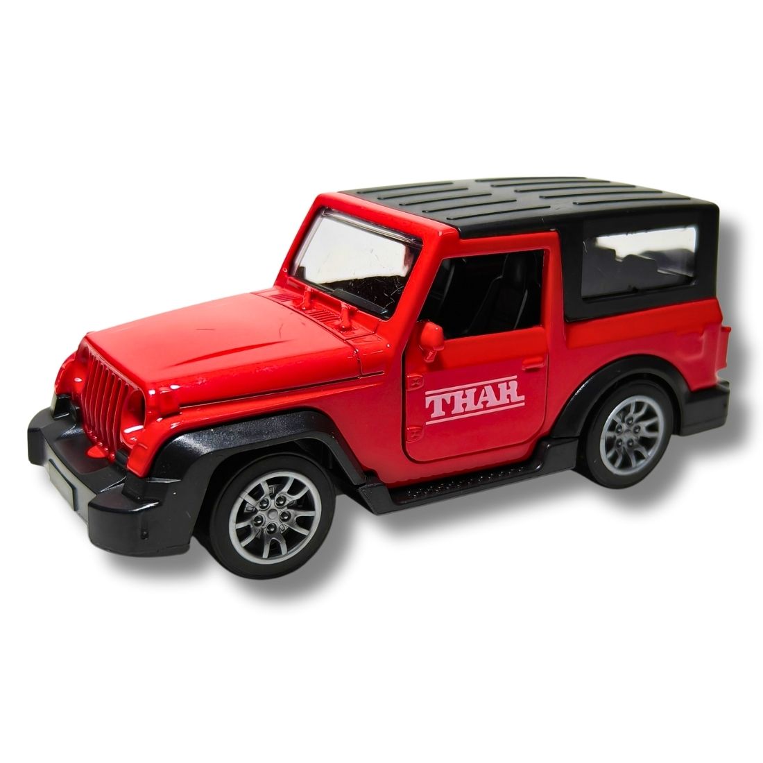 Bring home the adventure with the Red Thar Metal Car Toy. This premium 1:32 scale diecast model features a durable metal body, detailed interiors, pull-back action, opening doors, and real light & sound effects. Perfect for kids and collectors, it’s a stylish miniature of the iconic Thar.